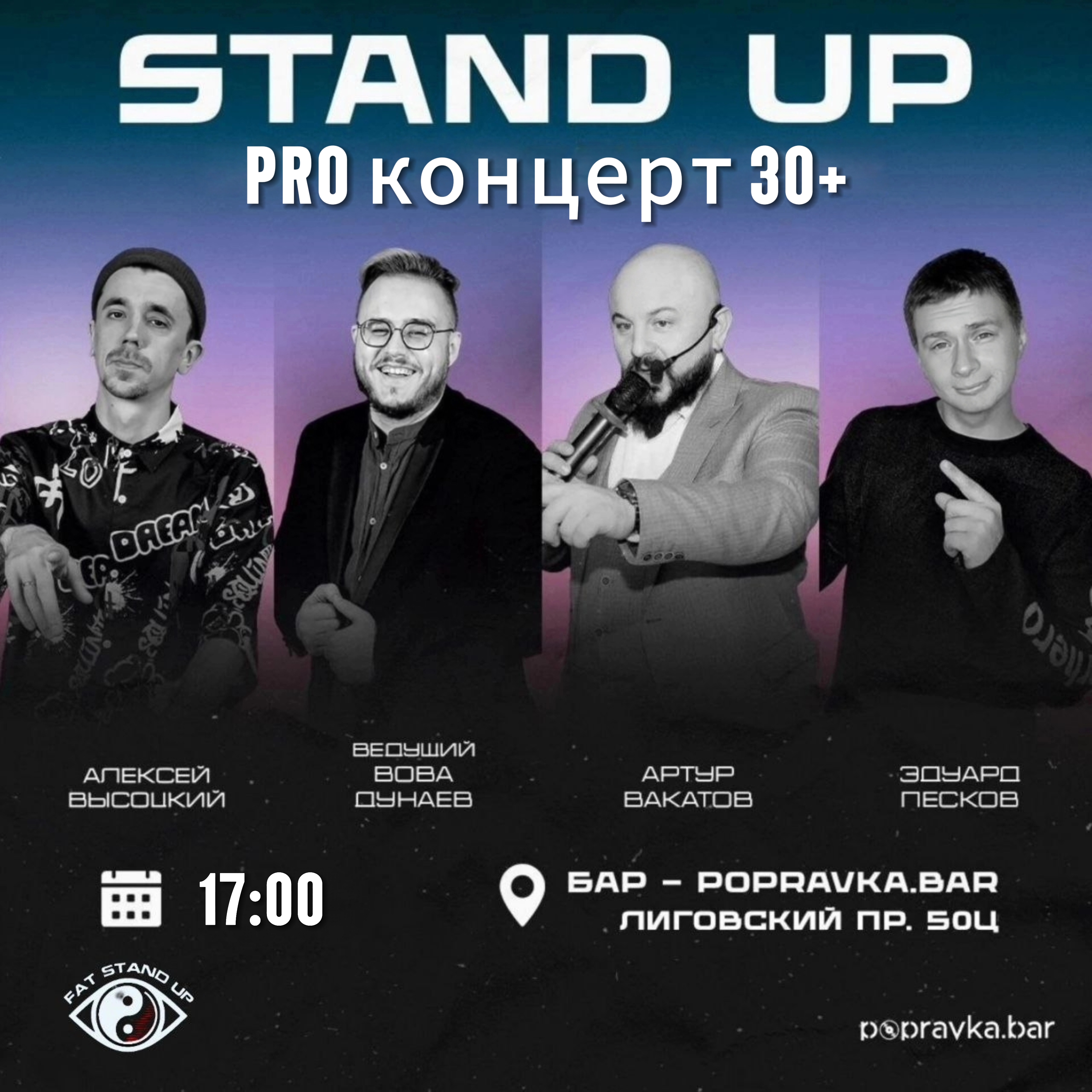 Взрослые люди, взрослые темы, взрослый юмор. Стендап концерт для тех, кто прожил слишком много, чтобы оставаться беззаботным, но слишком мало, чтобы нет-нет – да и сотворить какую-нибудь дичь в хмельном угаре